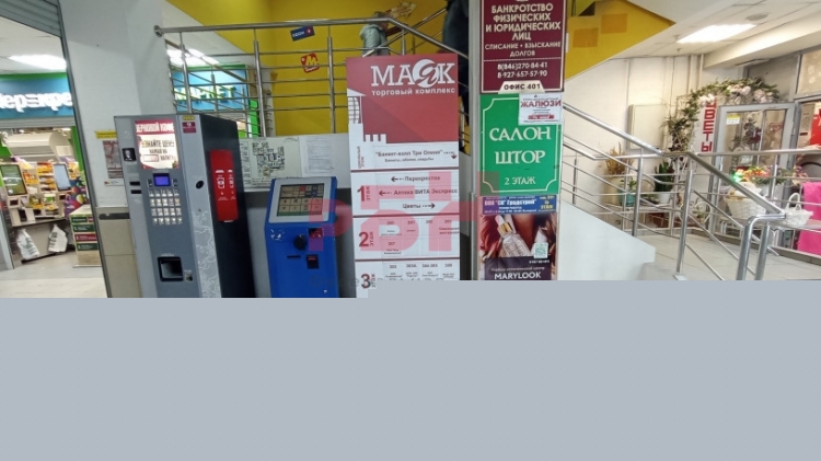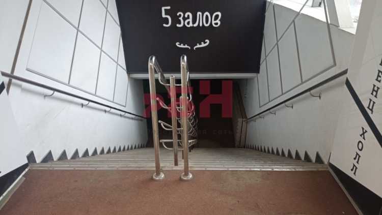 - вход -широкая лестница в цоколь из входной группы торгового центра ;