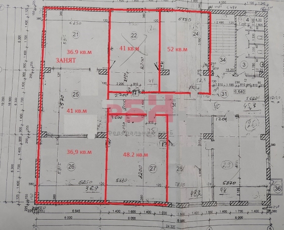 - 3 отдельных кабинета площадью 48 кв.м, 48,2 кв.м и 52 кв.м;