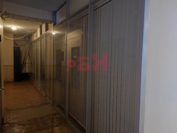 -стены покрашены, потолок армстронг, полы линолеум, металлическая дверь;