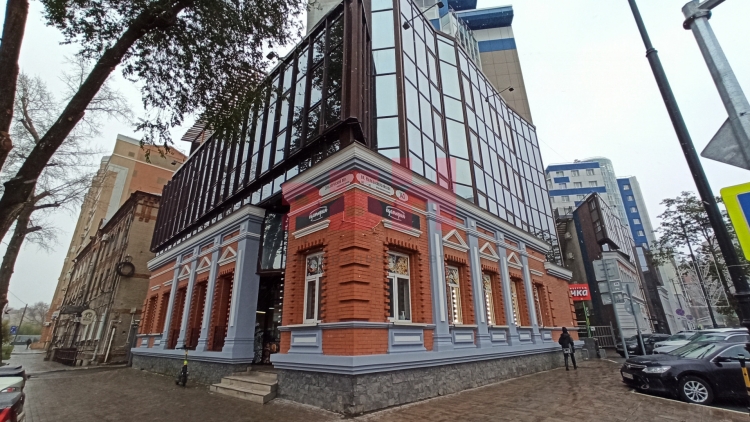 - фасадная часть первого этажа имеет воссозданные исторические фасады, характерные для конца XIX века. ограждающие конструкции остальных этажей - светопрозрачные витражи;