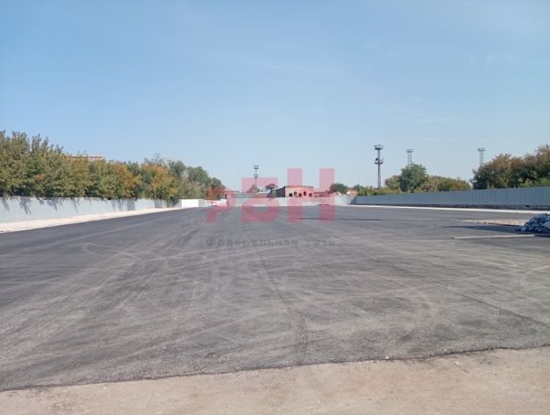 Открытая площадка прямоугольной формы, в основном, с твердым покрытием, двумя въездами, собственной ЖД веткой, офисным зданием, с газопроводом по границе участка с прямым выездом на ул. Олимпийская.
