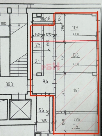 - блок кабинетной системы: 13.6+16.3+7.4, коридор, сан узел ;