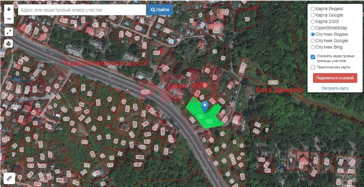 - заезд на участок возможен с дороги на базу «Динамо» (асфальт) и со стороны Домов ЭМО;