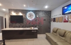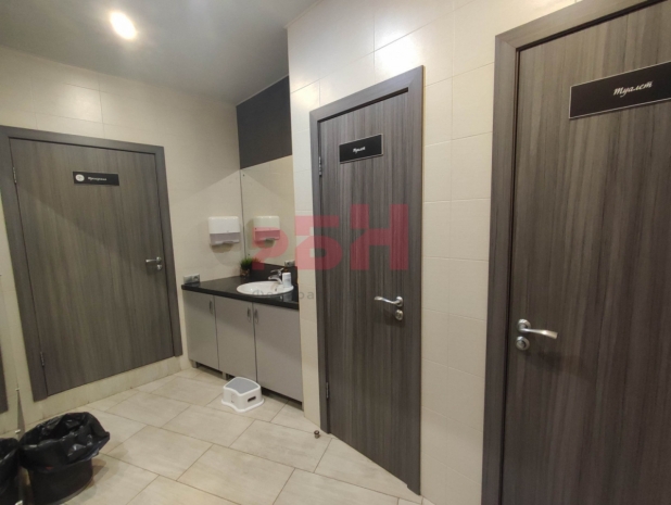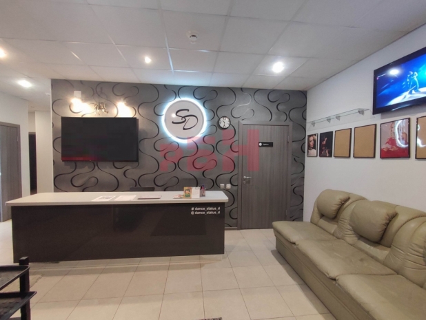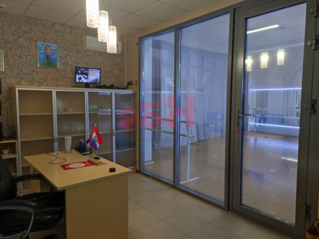 -дизайнерский ремонт: холл с ресепшен, две раздевалки, зал для занятий 100 кв м, кабинет руководителя, со стеклянной перегородкой и дверью с выходом в зал для занятий, тренерская, сан узел 2 шт. и душевая;