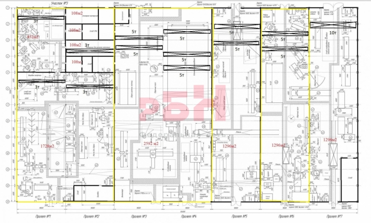 - оборудован кран-балкой г/п от 10 т, высота до балки 6 м;