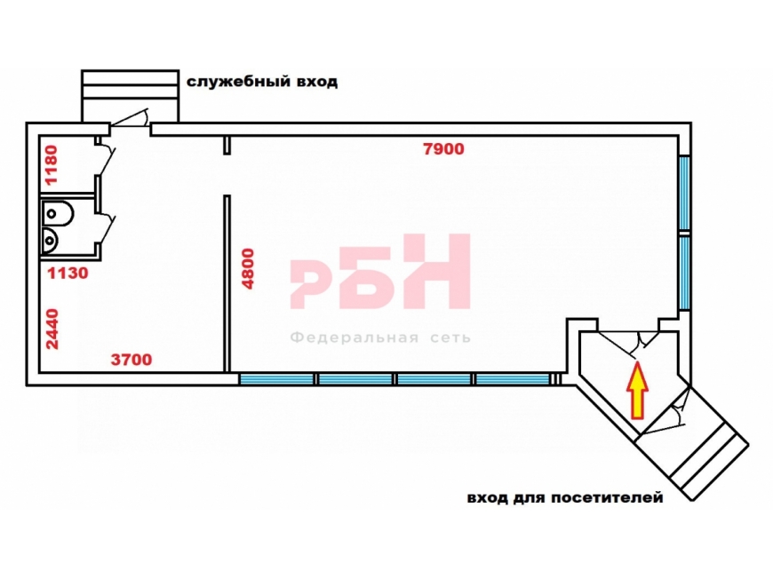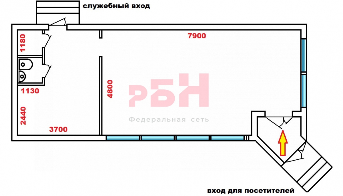 Объект используется под магазин продуктов, может быть переформатирован под кафе.
