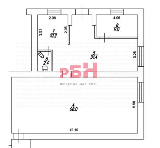 Общая площадь 121 кв.м, отдельный вход. Все коммуникации центральные.